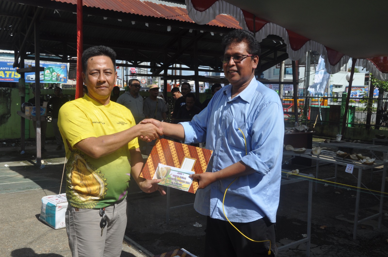 FAKTA GRUP – Durian ‘Mouse King’ asal Desa Sebungkuh Kecamatan Kembayan didaulat menjadi durian ter-enak di Sanggau. Rasanya yang gurih dengan warna oranye yang mencolok membuat durian milik Firman Sawira ini menjadi pemenang lomba kontes durian yang diselenggarakan Dinas Ketahanan Pangan Tanaman Pangan Hortikultura dan Perikanan (DKPTPHP) Sanggau, Kamis 19 Desember 2024.